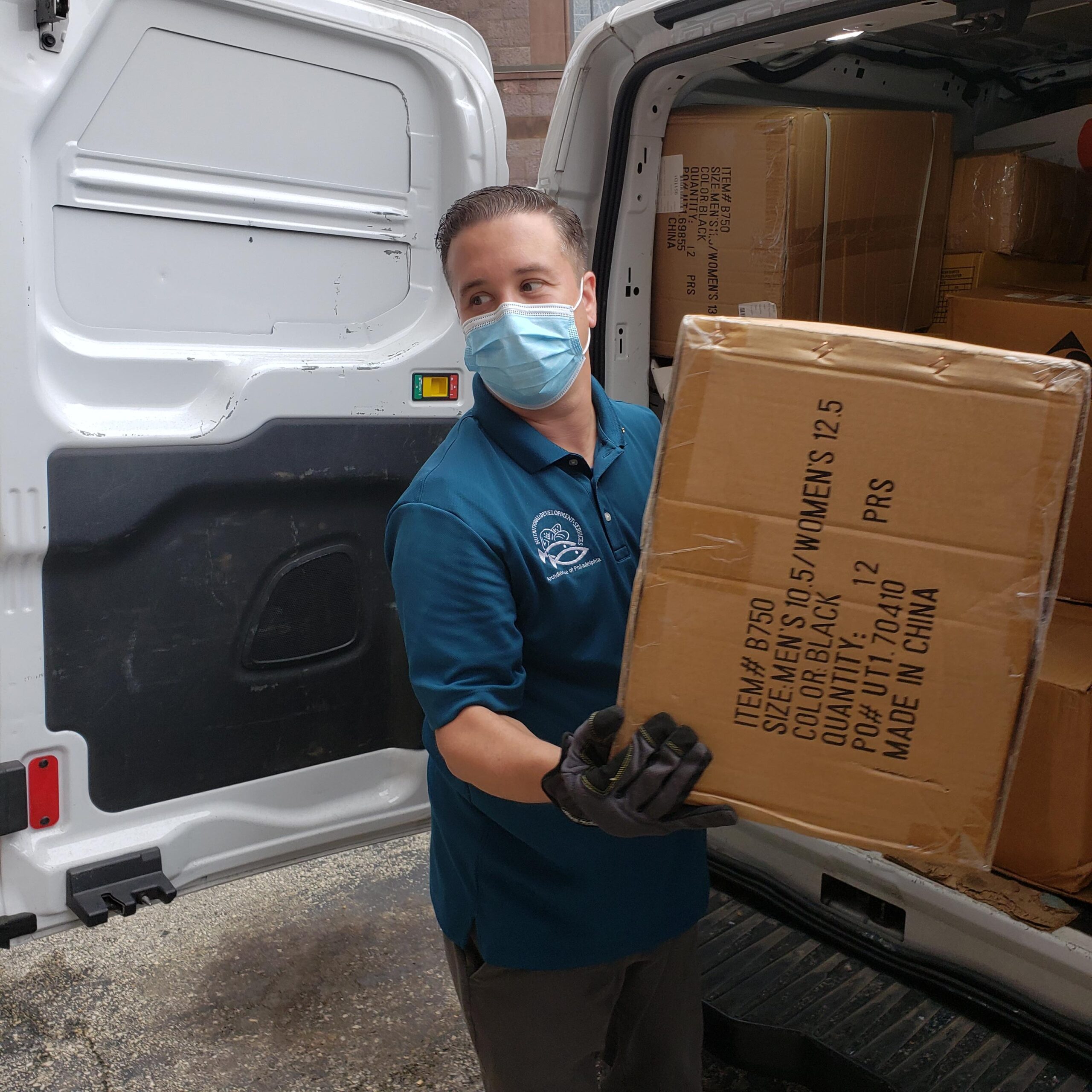 Attached are pictures for publication purposes with credit to the Archdiocese of Philadelphia. Image one depicts numerous boxes of the new clothing items being donated by CSS. Image two depicts NDS driver, Don Devlin, loading up donations to be sent to the Diocese of Houma-Thibodaux.