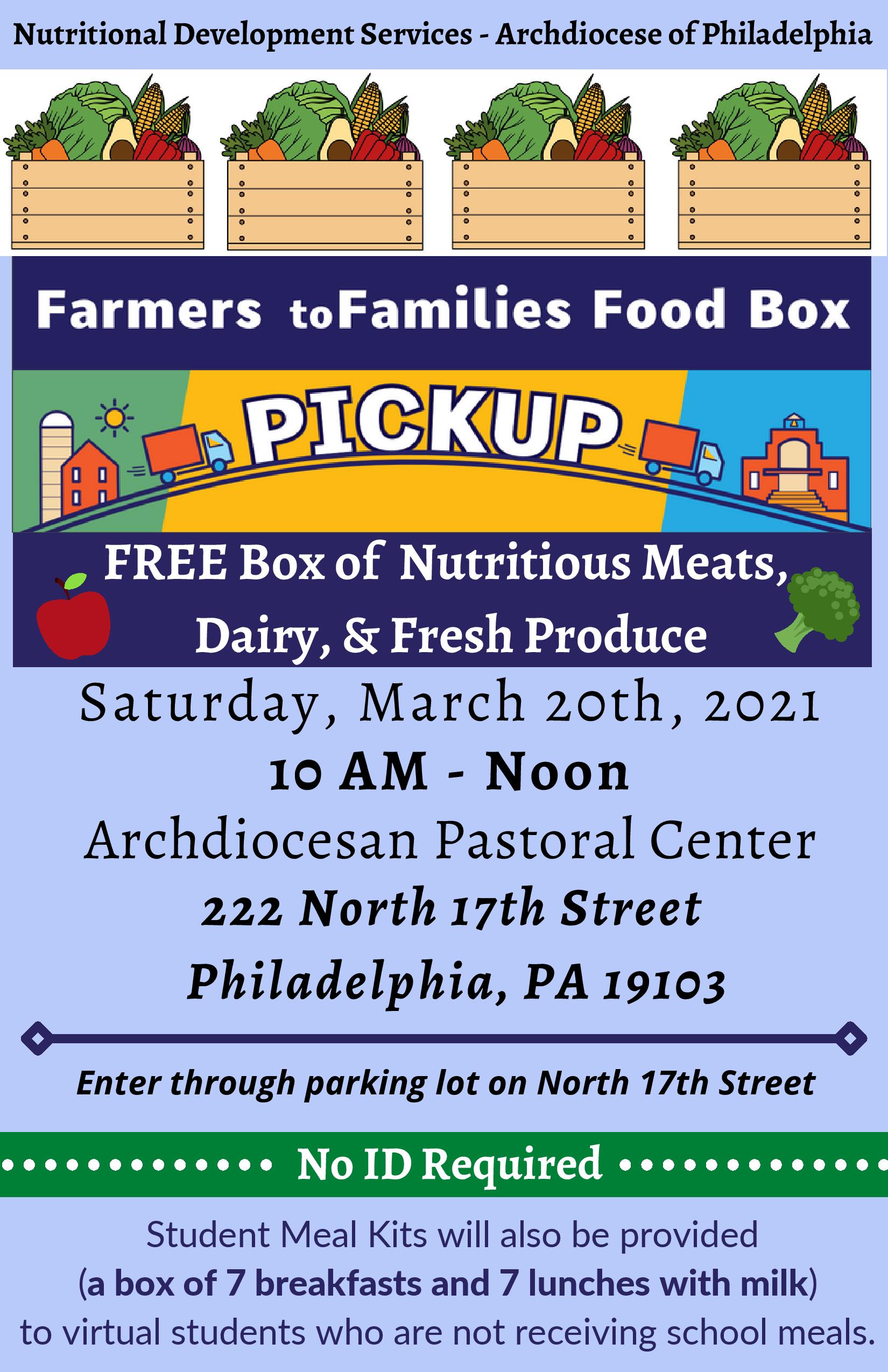 Nutritional Development Services of the Archdiocese of Philadelphia (NDS) is hosting a free drive-through community food distribution in Center City for individuals and households facing food insecurity stemming from the ongoing COVID-19 pandemic.