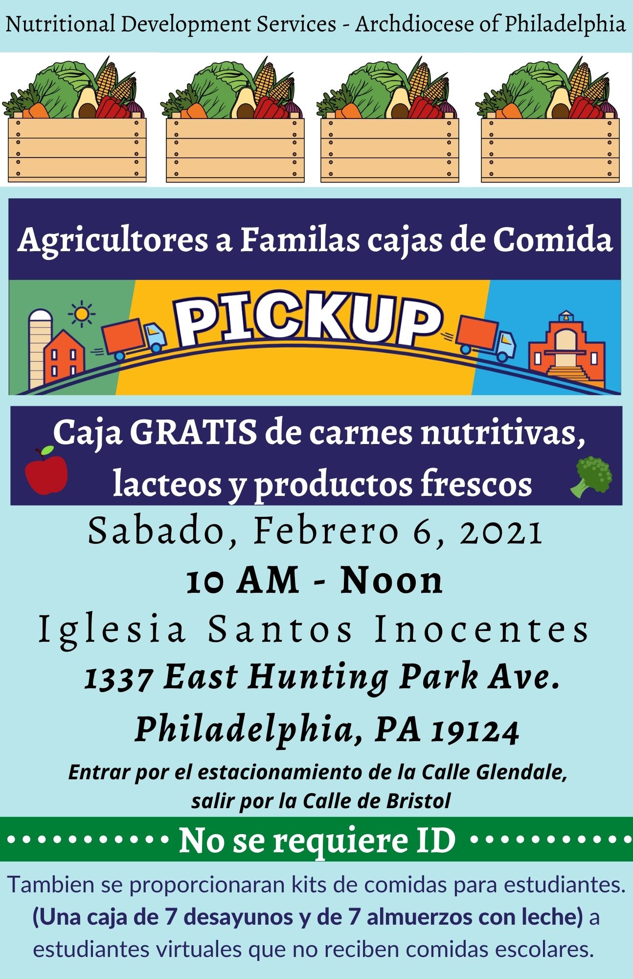 Nutritional Development Services of the Archdiocese of Philadelphia (NDS) will host a free “Farmers to Families” food box distribution in North Philadelphia for individuals and families facing food insecurity stemming from the ongoing Coronavirus (COVID-19) pandemic.