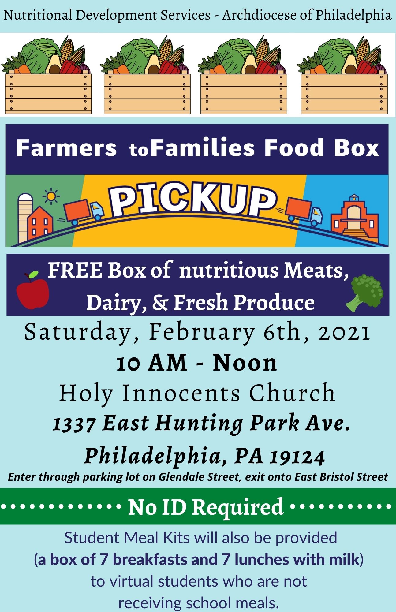 Nutritional Development Services of the Archdiocese of Philadelphia (NDS) will host a free “Farmers to Families” food box distribution in North Philadelphia for individuals and families facing food insecurity stemming from the ongoing Coronavirus (COVID-19) pandemic.