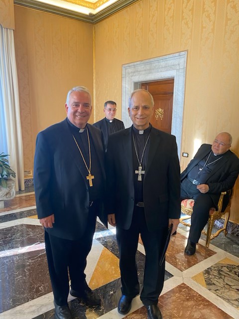 Editor’s Note: Attached is a photograph taken during a meeting of the Pontifical Commission for Latin America in Rome in June of 2024. It features Archbishop Pérez with Pope Leo XIV, then-Cardinal Prevost.